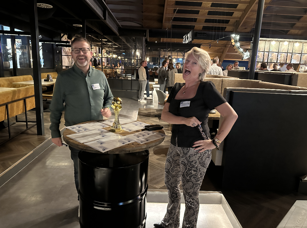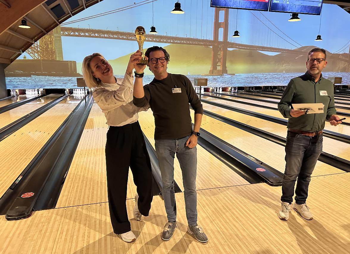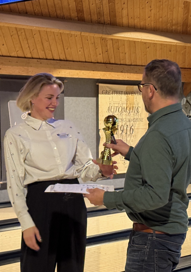 De tussentijds geserveerde drankjes en versnaperingen hielden de sfeer en het energieniveau prettig op peil. Uiteindelijk tekenden de ware routiniers toch voor de eindzeges: Henk Nachtegaal van My Way Coaching / Guiora BV won glansrijk bij de heren en Wanda de Mooij van Uitgeverij Verhagen behaalde afgetekend de hoogste score bij de dames. Wanda mocht de ONDB Wisseltrofee in ontvangst nemen. Die voor Henk wordt zo spoedig mogelijk nageleverd. De populaire Poedelprijs - een uur bowlen met 6 personen - ging nipt naar Henriëtte van den Anker van Delekkerstekoffieboon.nl. Mede doordat niet iedereen deelnam aan de competitie, kon iedereen naar hartelust spelen, de techniek oefenen en de persoonlijke records scherpstellen. Dus dat belooft wat voor de strijd om de volgende ONDB Wisseltrofee.
