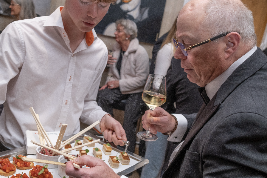 Het heerlijke en fraai gepresenteerde walking dinner bood voor ieder wat wils en kon dan ook rekenen op veel waardering. De attente bediening hield de glazen goed gevuld en DJ Charles Bleekveld slaagde er schijnbaar moeiteloos in om de dansvloer vol te krijgen, daarbij enthousiast ondersteund door de vocale kwaliteiten van onze eigen onvolprezen Bob Draisma. We kunnen gerust vaststellen: deze party was helemaal het einde.